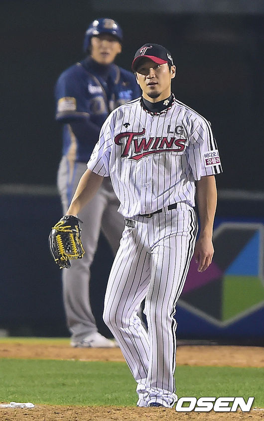 24일 오후 서울 잠실구장에서 열린 '2014 한국야쿠르트 세븐 프로야구' 포스트시즌 준플레이오프 3차전 LG 트윈스와 NC 다이노스의 경기, 7회초 1사 1루 LG 신재웅이 NC 나성범에게 볼넷을 허용한 뒤 아쉬워하고 있다. 반격이냐, 마침표냐. 두 외국인 투수들에게 양 팀의 운명이 달렸다. NC와 LG의 준플레이오프 3차전은 이번 시리즈 처음으로 외국인 투수들이 선발 대결이다. NC는 찰리 쉬렉(29), LG는 코리 리오단(28)을 각각 3차전 선발투수로 예고했다. NC는 반격의 1승을 노리고, LG는 3연승으로 시리즈 스윕을 바라본다. NC 찰리는 실질적인 팀의 에이스. 지난해 29경기에서 189이닝을 던지며 11승7패 평균자책점 2.48로 이 부문 1위에 올라 재계약에 성공한 찰리는 2년차가 된 올해도 28경기에서 165⅓이닝을 소화하며 12승8패 평균자책점 3.81로 2년 연속 두 자릿수 승수를 올렸다. LG 리오단은 한국프로야구 데뷔 첫 해 적응기를 거쳐 연착륙했다. 28경기에서 168이닝을 던진 그는 9승10패 평균자책점 3.96으로 준수한 성적을 냈다. 비록 두 자릿수 승수에는 도달하지 못했지만, 팀 내 최다 16차례 퀄리티 스타트의 꾸준함으로 안정감을 자랑했다. / youngrae@osen.co.kr