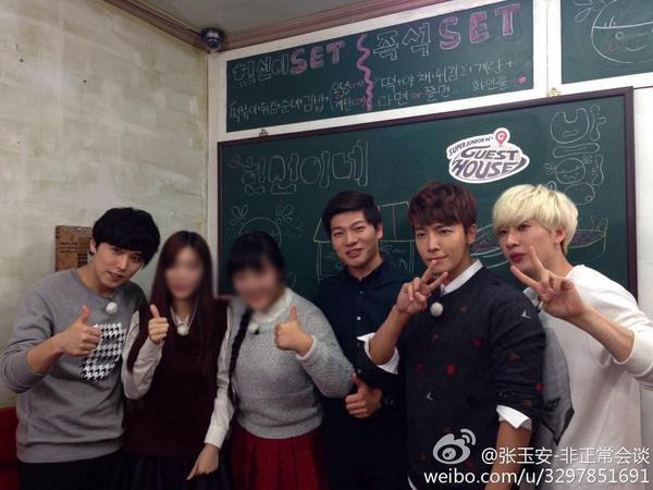 공개된 사진 속에는 유명 떡볶이집을 배경으로 슈퍼주니어 동해, 은헉, 성민과 포즈를 취하고 있는 장위안의 모습이 담겨 있어 눈길을 끈다.