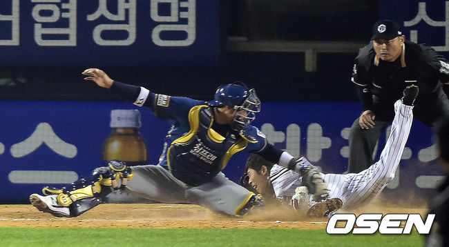 24일 오후 서울 잠실구장에서 열린 '2014 한국야쿠르트 세븐 프로야구' 포스트시즌 준플레이오프 3차전 LG 트윈스와 NC 다이노스의 경기, 8회말 1사 3루 LG 황목치승이 이병규의 내야 땅볼때 홈으로 쇄도하다 아웃당하고 있다. 반격이냐, 마침표냐. 두 외국인 투수들에게 양 팀의 운명이 달렸다. NC와 LG의 준플레이오프 3차전은 이번 시리즈 처음으로 외국인 투수들이 선발 대결이다. NC는 찰리 쉬렉(29), LG는 코리 리오단(28)을 각각 3차전 선발투수로 예고했다. NC는 반격의 1승을 노리고, LG는 3연승으로 시리즈 스윕을 바라본다. NC 찰리는 실질적인 팀의 에이스. 지난해 29경기에서 189이닝을 던지며 11승7패 평균자책점 2.48로 이 부문 1위에 올라 재계약에 성공한 찰리는 2년차가 된 올해도 28경기에서 165⅓이닝을 소화하며 12승8패 평균자책점 3.81로 2년 연속 두 자릿수 승수를 올렸다. LG 리오단은 한국프로야구 데뷔 첫 해 적응기를 거쳐 연착륙했다. 28경기에서 168이닝을 던진 그는 9승10패 평균자책점 3.96으로 준수한 성적을 냈다. 비록 두 자릿수 승수에는 도달하지 못했지만, 팀 내 최다 16차례 퀄리티 스타트의 꾸준함으로 안정감을 자랑했다. / youngrae@osen.co.kr