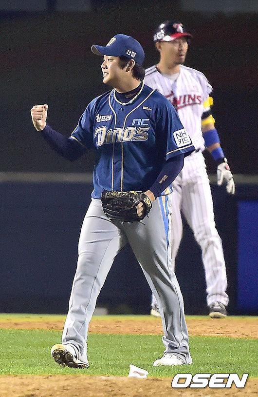 24일 오후 서울 잠실구장에서 열린 '2014 한국야쿠르트 세븐 프로야구' 포스트시즌 준플레이오프 3차전 LG 트윈스와 NC 다이노스의 경기, 8회말 1사 3루 NC 이민호가 LG 이병규의 내야 땅볼때 홈으로 쇄도하던 황목치승을 잡아낸 뒤 기뻐하고 있다. 반격이냐, 마침표냐. 두 외국인 투수들에게 양 팀의 운명이 달렸다. NC와 LG의 준플레이오프 3차전은 이번 시리즈 처음으로 외국인 투수들이 선발 대결이다. NC는 찰리 쉬렉(29), LG는 코리 리오단(28)을 각각 3차전 선발투수로 예고했다. NC는 반격의 1승을 노리고, LG는 3연승으로 시리즈 스윕을 바라본다. NC 찰리는 실질적인 팀의 에이스. 지난해 29경기에서 189이닝을 던지며 11승7패 평균자책점 2.48로 이 부문 1위에 올라 재계약에 성공한 찰리는 2년차가 된 올해도 28경기에서 165⅓이닝을 소화하며 12승8패 평균자책점 3.81로 2년 연속 두 자릿수 승수를 올렸다. LG 리오단은 한국프로야구 데뷔 첫 해 적응기를 거쳐 연착륙했다. 28경기에서 168이닝을 던진 그는 9승10패 평균자책점 3.96으로 준수한 성적을 냈다. 비록 두 자릿수 승수에는 도달하지 못했지만, 팀 내 최다 16차례 퀄리티 스타트의 꾸준함으로 안정감을 자랑했다. / youngrae@osen.co.kr