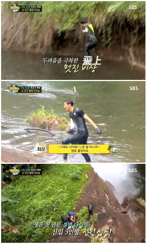 신입 3인방이 절벽 다이빙에 전원 성공했다.
