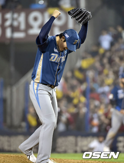 김진성이 정의윤을 삼진으로 처리한 후 환호하고 있다. /spjj@osen.co.kr