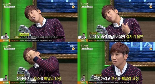 유세윤은 24일 오후 방송된 JTBC 예능프로그램 '마녀사냥'에서 "숨 공포증이 있는 것 같다"고 밝혔다.