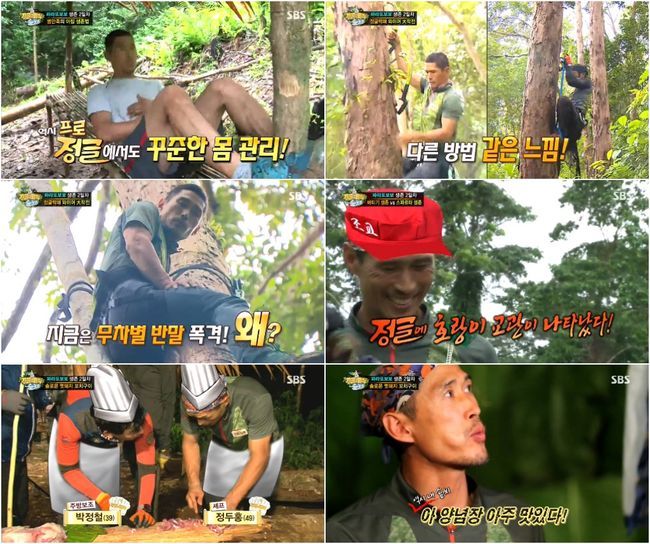 김병만이 자리를 비운 사이 휴식을 원하는 류담·박정철의 바람도 보기 좋게 무너졌다. 몸을 쉬지 않고 움직여야 하는 정두홍이 이유였다. 그는 동료들에게 장작패기, 커피갈기 등 '노동'을 끊임없이 권했다. 여자라고 예외도 없었다. 도끼질이 미숙한 김규리에게도 엄격했다.