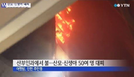 지난 24일 밤 인천광역시 소재 7층짜리 건물에 위치한 산부인과에서 불이 나 병원에 있던 산모와 신생아가 긴급 대피했다.