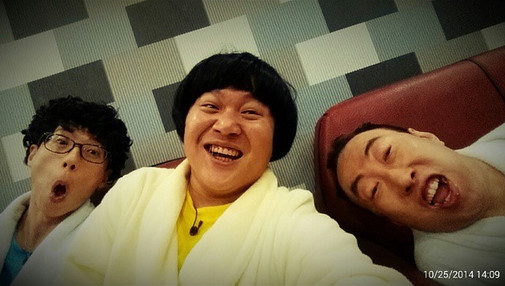 공개된 사진 속에는 카메라를 향해 익살스러운 표정을 짓고 있는 세 사람의 모습이 보인다. 특히 이들은 모두 찜질방 옷과 가운을 걸치고 있어 KBS 2TV ‘해피투게더’ 촬영 중임을 알 수 있다.