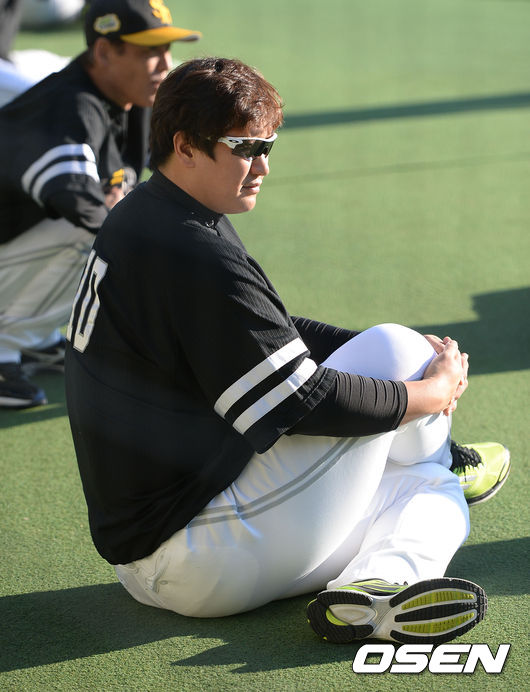 [JS사진]이대호,'몸부터 풀고'
