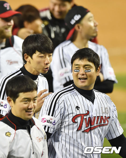 LG는 25일 잠실구장에서 열린 NC와의 ‘2014 한국야쿠르트 세븐 프로야구’ 준플레이오프 4차전에서 3회 결승타 포함 4안타를 몰아친 이병규(7번)를 비롯, 장단 17안타를 터뜨린 타선의 대폭발과 선발 류제국의 5이닝 1실점 호투를 묶어 11-3으로 크게 이겼다. 시리즈 전적 3승1패를 기록한 LG는 플레이오프 진출을 확정지었다. 이제 LG는 오는 27일부터 열릴 넥센과의 플레이오프에 대비한다. / rumi@osen.co.kr