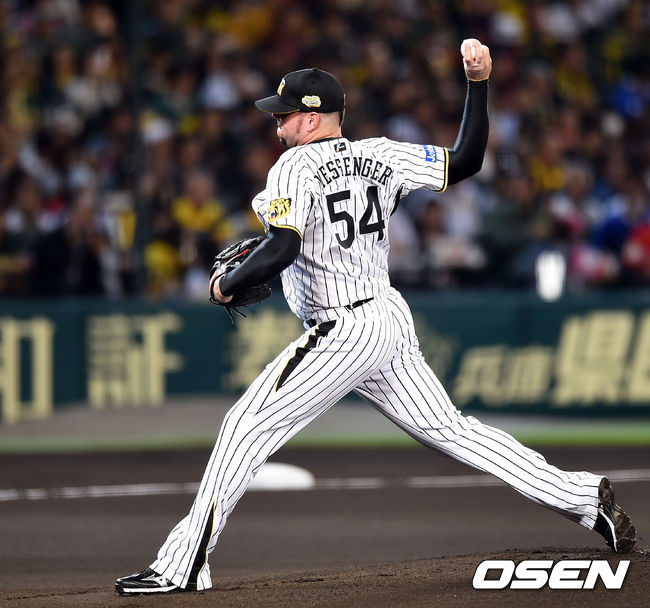 1회초 무사에서 한신 선발투수 랜디 메신가 힘차게 공을 던지고 있다.