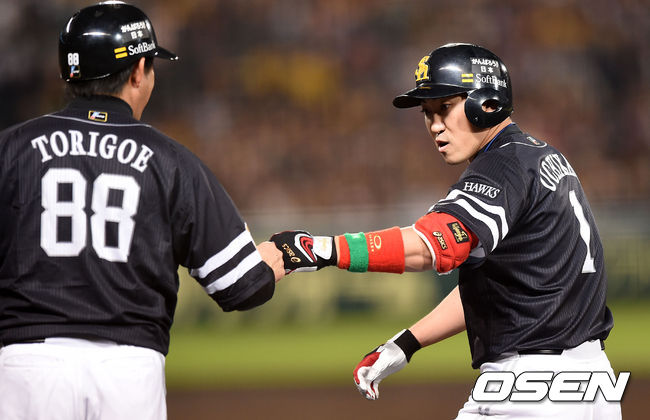 4회초 1사에서 소포트뱅크 우치가와 세이지가 실책으로 출루에 성공하고 있다.