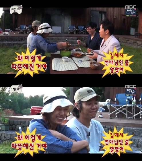 음식을 대접하는 푸근한 모습의 이효리에 유재석은 "너 왜이렇게 따뜻해졌냐. 김혜자 선생님인 줄 알았다"고 당황해 웃음을 자아냈다.