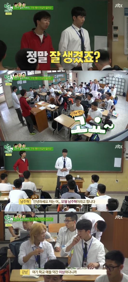 25일 방송된 JTBC '학교 다녀오겠습니다'에서는 성동일, 윤도현, 남주혁, 강남, 박명수, 에네스, 줄리안이 인천사대부고에서 고1 생활하는 두 번째 이야기가 전파를 탔다.