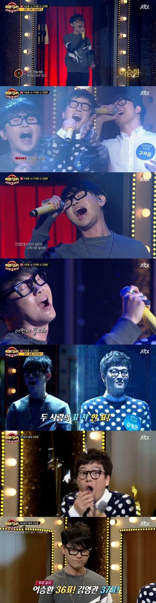 통이 열렸고 이승환은 3번 통에 있었다. 3라운드 탈락자는 34표를 받은 2번 통의 모창능력자였고 이승환은 처음으로 최저 득표자가 됐다.