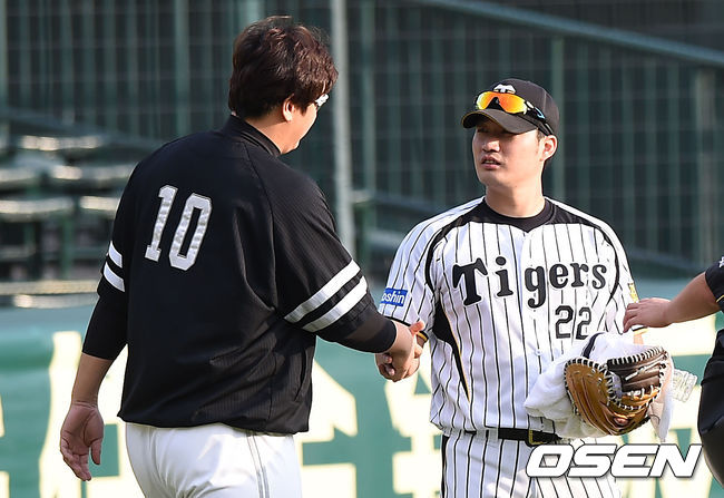 [JS사진]이대호-오승환,'팀은 달라도 반가운 인사'
