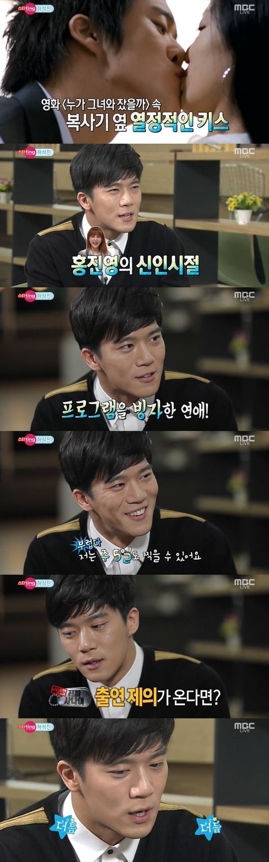 26일 오후 방송된 MBC '섹션TV 연예통신'에서 하석진은 과거 홍진영과의 연기호흡을 맞췄던 것에 대해 이야기하며 현재 홍진영이 남궁민과 함께 출연 중인 가상결혼 예능 '우결'에 대한 출연 욕구를 내비쳤다.