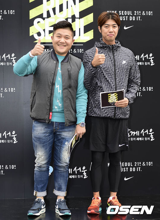 레이스 시작전 진행된 포토월에서 개그맨 조세호와 서태훈이 포토타임을 갖고 있다.