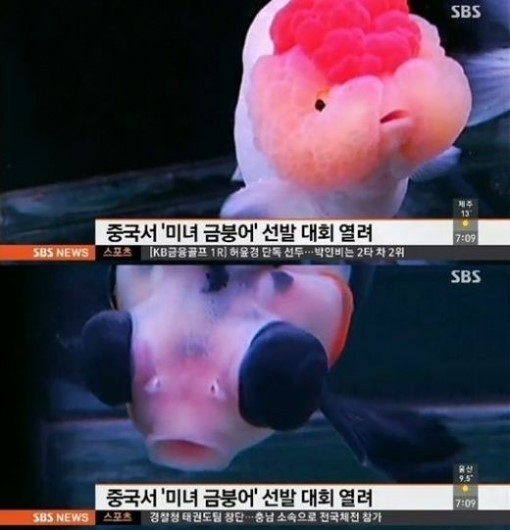 이 중국 미녀 금붕어 선발대회에는 판다처럼 눈이 까만 금붕어를 비롯해 푸들처럼 머리가 꼬불꼬불한 금붕어 등 다양하고 이색적인 금붕어들이 등장했다.