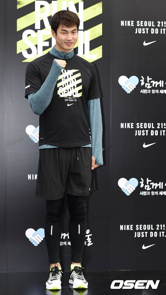 레이스 시작전 진행된 포토월에서 배우 김산호가 포토타임을 갖고 있다.