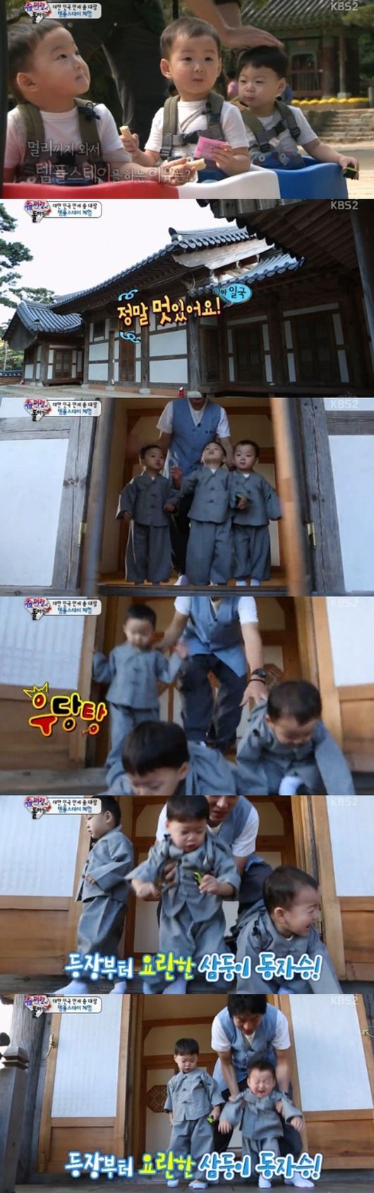 26일 방송된 KBS 2TV 예능프로그램 ‘해피선데이-슈퍼맨이 돌아왔다’에서는 템플스테이에 나선 송일국과 삼둥이 대한 민국 만세의 모습이 그려졌다.