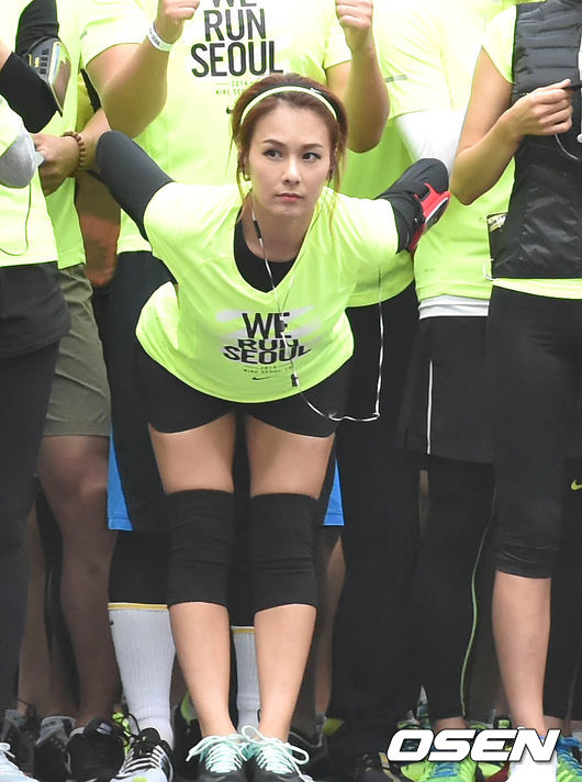 전 세계 14개 도시에서 14만 명의 러너들이 참여하는 최대 규모의 글로벌 러닝축제 ‘2014 나이키 위런서울(NIKE WE RUN SEOUL)’이 26일 서울 광화문 세종대로에서 개최, 채연이 달리기 전 몸을 풀고 ㄴ 있다.