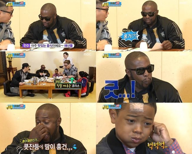 윤민수는 시나드에게 "아주 맛있는 해산물 요리"라고 홍어를 소개했고, 시나드 부자는 기뻐했다. 이후 등장한 홍어 요리를 먹고도 태연한 척 했으나, 물을 마시는 그의 선글라스를 벗기니 콧등에 진땀이 흥건했다.