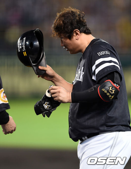 1회초 1사 1루에서 소프트뱅크 이대호가 병살타를 치고 아쉬운 표정을 짓고 있다.