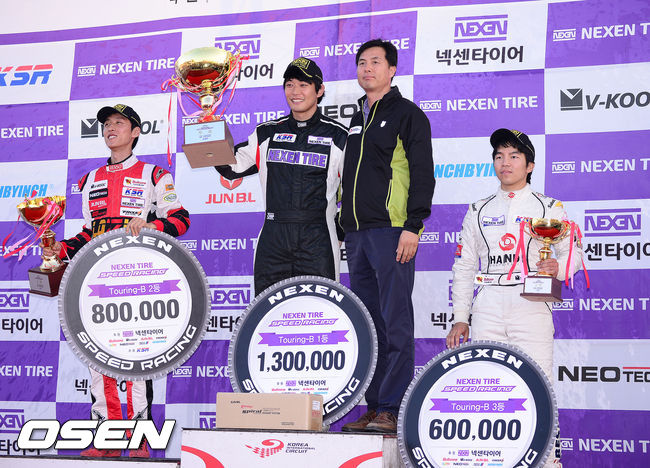 투어링B 1위 이준은(가운데), 2위 김양호(왼쪽), 3위 김재우가 시상대에서 포토타임을 갖고 있다. / ajyoung@osen.co.kr