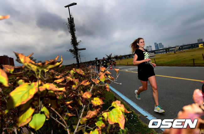한 참가자가 여의도 한강공원 코스를 달리고 있다.