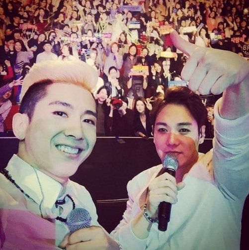 공개된 사진 속에는 관객들과 함께 포즈를 취하고 있는 브라이언과 환희의 모습이 담겨있다. 특히 브라이언은 환한 미소로, 환희는 시크한 표정으로 엄지손가락을 들어 올리고 있어 눈길을 끌었다.