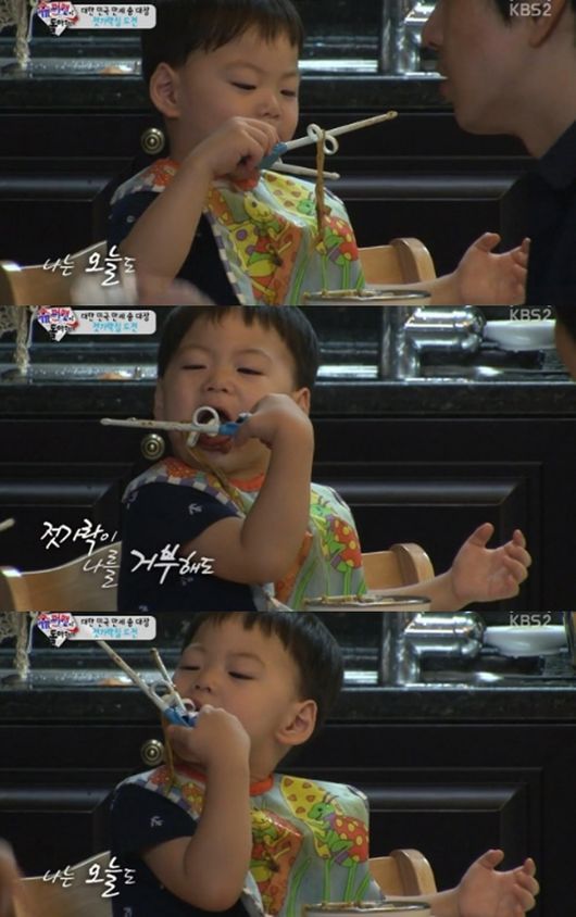 이날 방송에서 삼둥이 대한 민국 만세는 템플 스테이를 경험했고, 집에 돌아와 아빠 송일국이 해준 짜장면을 먹는 모습으로 시선을 끌었다.