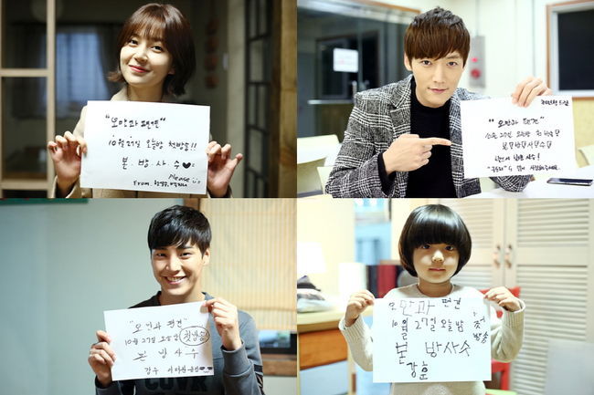 ‘오만과 편견’의 백진희, 최진혁, 이태환, 아역배우 김강훈 등이 본방사수를 독려하는 ‘자필 인증샷’을 공개했다.