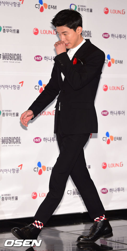 27일 서울 상암동 CH E&M에서 진행된 뮤지컬 킹키부츠 제작발표회에서 김무열이 입장하고 있다.