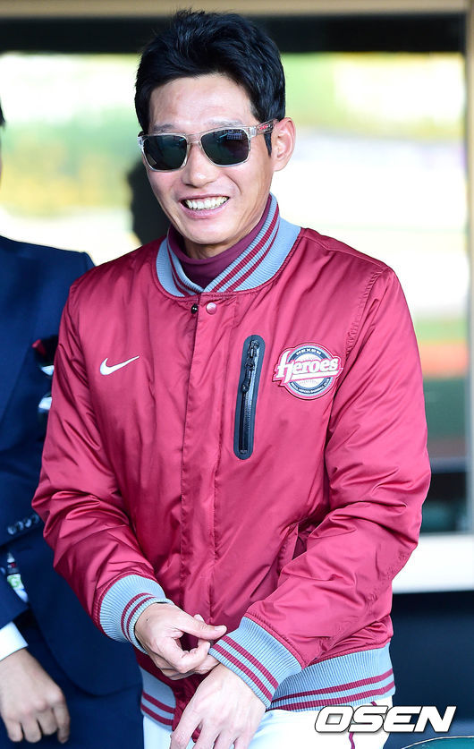 경기에 앞서 넥센 염경엽 감독이 미소짓고 있다.