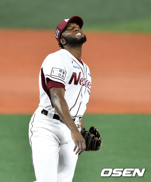 2회초 넥센 소사가 LG 스나이더 타석에 볼 판정에 아쉬워하고 있다.