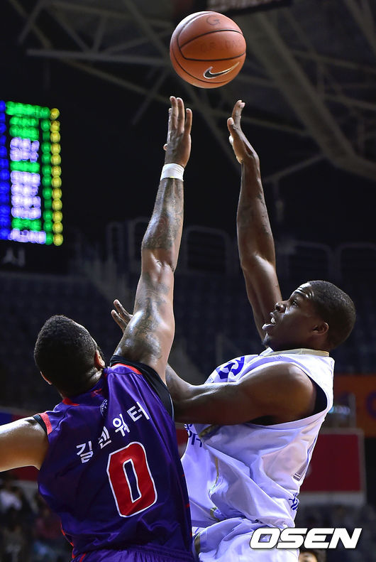 27일 오후 경기도 고양실내체육관에서 '2014-2015 KCC 프로농구' 고양 오리온스와 전주 KCC의 경기가 열렸다. 1쿼터 KCC 심스가 점프슛을 시도하고 있다. 고양 오리온스는 전주 KCC를 상대로 개막 8연승에 도전한다. 만약 오리온스가 승리할 경우 역대 개막 후 최다연승 공동 1위를 달성하게 된다. 아울러 KBL 사상 최초의 1라운드 전승에 도전할 기회를 얻게 된다. 역대 개막 후 최다연승은 2011-2012시즌 동부가 세웠던 8연승이다. 당시 동부는 KT와의 1라운드 마지막 경기서 68-76으로 패하며 최초의 1라운드 전승이 아쉽게 불발됐다. 이 시즌의 동부는 정규리그 역대 최강팀으로 남아있다. 당시 동부는 44승 10패로 정규리그 최다승, 81.5%의 정규리그 최고승률, 정규리그 역대최다 16연승 기록까지 동시에 달성한 무적의 팀이었다. KCC는 최장신 센터 하승진이 지키는 골밑이 위력적이고, 김태술이 부상에서 회복되면서 좋은 경기력을 보이고 있다. 외국선수 타일러 윌커슨과 디숀 심스의 기량도 좋은 편이다. / youngrae@osen.co.kr