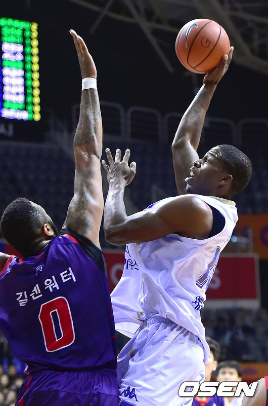 27일 오후 경기도 고양실내체육관에서 '2014-2015 KCC 프로농구' 고양 오리온스와 전주 KCC의 경기가 열렸다. 1쿼터 KCC 심스가 점프슛을 시도하고 있다. 고양 오리온스는 전주 KCC를 상대로 개막 8연승에 도전한다. 만약 오리온스가 승리할 경우 역대 개막 후 최다연승 공동 1위를 달성하게 된다. 아울러 KBL 사상 최초의 1라운드 전승에 도전할 기회를 얻게 된다. 역대 개막 후 최다연승은 2011-2012시즌 동부가 세웠던 8연승이다. 당시 동부는 KT와의 1라운드 마지막 경기서 68-76으로 패하며 최초의 1라운드 전승이 아쉽게 불발됐다. 이 시즌의 동부는 정규리그 역대 최강팀으로 남아있다. 당시 동부는 44승 10패로 정규리그 최다승, 81.5%의 정규리그 최고승률, 정규리그 역대최다 16연승 기록까지 동시에 달성한 무적의 팀이었다. KCC는 최장신 센터 하승진이 지키는 골밑이 위력적이고, 김태술이 부상에서 회복되면서 좋은 경기력을 보이고 있다. 외국선수 타일러 윌커슨과 디숀 심스의 기량도 좋은 편이다. / youngrae@osen.co.kr