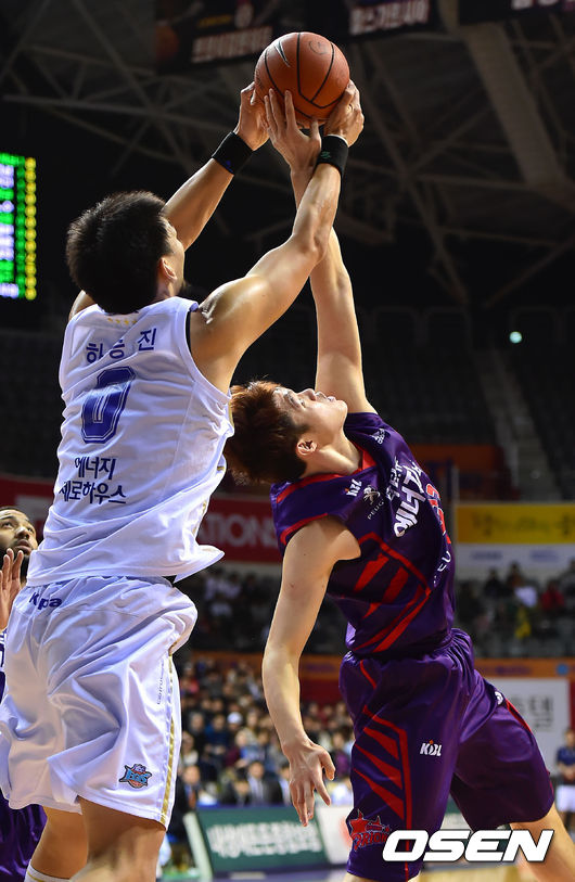 27일 오후 경기도 고양실내체육관에서 '2014-2015 KCC 프로농구' 고양 오리온스와 전주 KCC의 경기가 열렸다. 2쿼터 오리온스 이승현이 KCC 하승진의 공을 뺏어내고 있다. 고양 오리온스는 전주 KCC를 상대로 개막 8연승에 도전한다. 만약 오리온스가 승리할 경우 역대 개막 후 최다연승 공동 1위를 달성하게 된다. 아울러 KBL 사상 최초의 1라운드 전승에 도전할 기회를 얻게 된다. 역대 개막 후 최다연승은 2011-2012시즌 동부가 세웠던 8연승이다. 당시 동부는 KT와의 1라운드 마지막 경기서 68-76으로 패하며 최초의 1라운드 전승이 아쉽게 불발됐다. 이 시즌의 동부는 정규리그 역대 최강팀으로 남아있다. 당시 동부는 44승 10패로 정규리그 최다승, 81.5%의 정규리그 최고승률, 정규리그 역대최다 16연승 기록까지 동시에 달성한 무적의 팀이었다. KCC는 최장신 센터 하승진이 지키는 골밑이 위력적이고, 김태술이 부상에서 회복되면서 좋은 경기력을 보이고 있다. 외국선수 타일러 윌커슨과 디숀 심스의 기량도 좋은 편이다. / youngrae@osen.co.kr