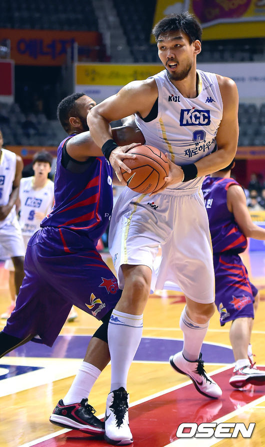 27일 오후 경기도 고양실내체육관에서 '2014-2015 KCC 프로농구' 고양 오리온스와 전주 KCC의 경기가 열렸다. KCC 하승진이 오리온스 길렌워터의 수비에 고전하고 있다. 고양 오리온스는 전주 KCC를 상대로 개막 8연승에 도전한다. 만약 오리온스가 승리할 경우 역대 개막 후 최다연승 공동 1위를 달성하게 된다. 아울러 KBL 사상 최초의 1라운드 전승에 도전할 기회를 얻게 된다. 역대 개막 후 최다연승은 2011-2012시즌 동부가 세웠던 8연승이다. 당시 동부는 KT와의 1라운드 마지막 경기서 68-76으로 패하며 최초의 1라운드 전승이 아쉽게 불발됐다. 이 시즌의 동부는 정규리그 역대 최강팀으로 남아있다. 당시 동부는 44승 10패로 정규리그 최다승, 81.5%의 정규리그 최고승률, 정규리그 역대최다 16연승 기록까지 동시에 달성한 무적의 팀이었다. KCC는 최장신 센터 하승진이 지키는 골밑이 위력적이고, 김태술이 부상에서 회복되면서 좋은 경기력을 보이고 있다. 외국선수 타일러 윌커슨과 디숀 심스의 기량도 좋은 편이다. / youngrae@osen.co.kr