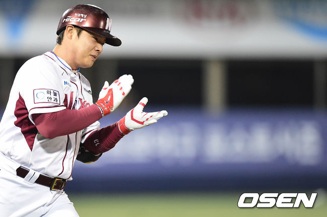 6회말 넥센 공격 1사 2, 3루 상황 대타 윤석민이 역전 우월 스리런포를 날리고 그라운드를 돌고 있다.