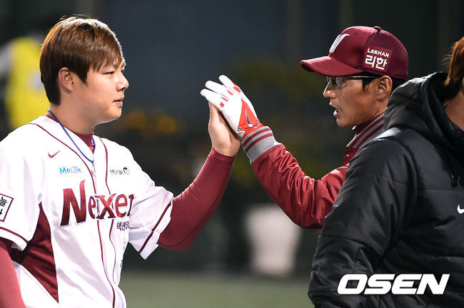 경기종료 후 넥센 염경엽 감독이 윤석민과 하이파이브를 하고 있다./soul1014@osen.co.kr