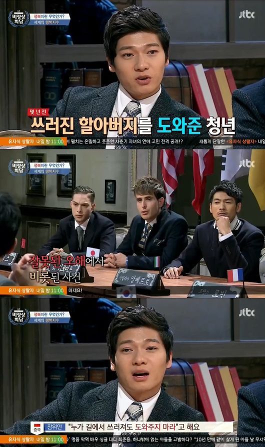 장위안은 "중국에서는 사람이 길가에 쓰러져도 도와주는 사람없다"며 "예전에 쓰러진 할아버지를 도와준 청년이 지금 감옥에 있다. 이 청년이 할아버지를 쓰러지게 했다고 오해해서 그렇다"고 설명했다.