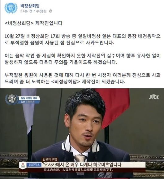'비정상회담'은 그 아픈 상처를 건드렸다. 일본 대표인 타쿠야를 대신해 일일 비정상으로 등장한 다케다 히로미츠의 소개 과정에서 흘러나온 기미가요는 일순 시청자의 귀를 의심케 만들었다.