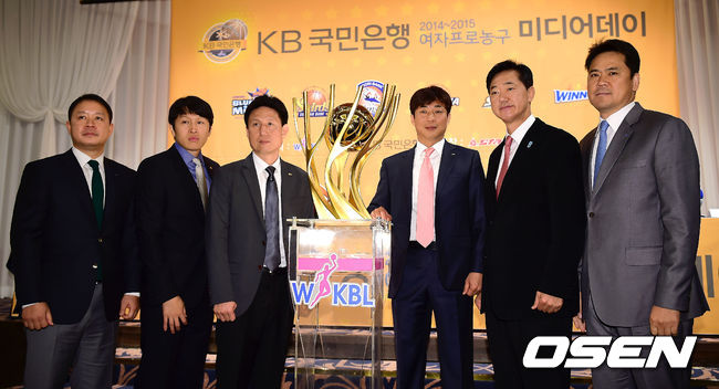 'KB 국민은행 2014-2015 여자프로농구' 미디어데이 및 타이틀 스폰서 조인식 행사가 28일 서울 청담동 리베라호텔에서 열렸다. 정인교, 위성우, 서동철, 안세환, 박종천, 이호근 감독이 포토타임을 갖고 있다. 미디어데이에는 6개 구단 감독 및 팀의 대표 선수가 참가해 시즌 출사표 및 각오를 밝힐 예정이다. 지난 시즌이 종료된 이후 새로운 감독이 선임된 구단은 신한은행(정인교 감독)과 하나외환(박종천 감독)이다. 2014-2015 여자프로농구는 내달 1일 개막해 이듬해 3월 말까지 약 5개월간의 대장정에 들어간다. KB스타즈와 KDB생명이 맞붙는 개막전은 1일 오후 2시 청주 실내체육관에서 열린다. / youngrae@osen.co.kr