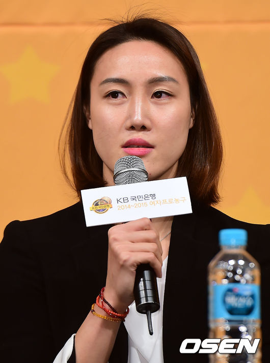 'KB 국민은행 2014-2015 여자프로농구' 미디어데이 및 타이틀 스폰서 조인식 행사가 28일 서울 청담동 리베라호텔에서 열렸다. 하나외환 김정은이 각오를 밝히고 있다. 미디어데이에는 6개 구단 감독 및 팀의 대표 선수가 참가해 시즌 출사표 및 각오를 밝힐 예정이다. 지난 시즌이 종료된 이후 새로운 감독이 선임된 구단은 신한은행(정인교 감독)과 하나외환(박종천 감독)이다. 2014-2015 여자프로농구는 내달 1일 개막해 이듬해 3월 말까지 약 5개월간의 대장정에 들어간다. KB스타즈와 KDB생명이 맞붙는 개막전은 1일 오후 2시 청주 실내체육관에서 열린다. / youngrae@osen.co.kr