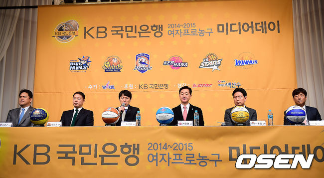 'KB 국민은행 2014-2015 여자프로농구' 미디어데이 및 타이틀 스폰서 조인식 행사가 28일 서울 청담동 리베라호텔에서 열렸다. 삼성 블루밍스 이호근 감독, 신한은행 정인교 감독, 우리은행 위성우 감독, 하나외환 박종천 감독, KB 스타즈 서동철 감독, KDB 생명 안세환 감독이 포토타임을 갖고 있다. 미디어데이에는 6개 구단 감독 및 팀의 대표 선수가 참가해 시즌 출사표 및 각오를 밝힐 예정이다. 지난 시즌이 종료된 이후 새로운 감독이 선임된 구단은 신한은행(정인교 감독)과 하나외환(박종천 감독)이다. 2014-2015 여자프로농구는 내달 1일 개막해 이듬해 3월 말까지 약 5개월간의 대장정에 들어간다. KB스타즈와 KDB생명이 맞붙는 개막전은 1일 오후 2시 청주 실내체육관에서 열린다. / youngrae@osen.co.kr