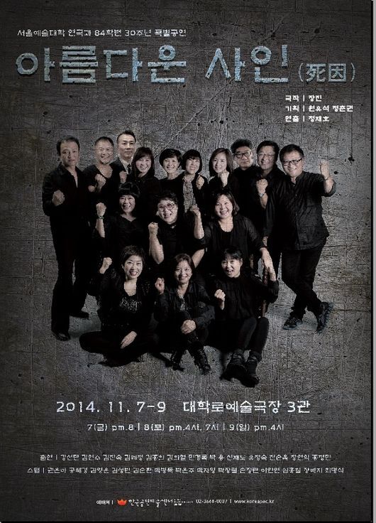 끼많고 재주많은 서울예전 연극과 출신 84 학번들이 뭉쳤다. 바로 서울예전 출신인 장진 감독이 각본한 연극 '아름다운 사인(死因)'이 그 무대다.