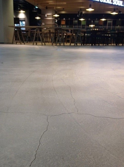 이에 롯데건설은 해명 자료를 통해 "해당 층이 서울의 옛 느낌을 살린 식당이 자리했다"며 "한마디로 바닥 균열은 균열이 아니라, 일부러 금이 간 것 처럼 연출한 바닥 디자인"이라고 설명했다.