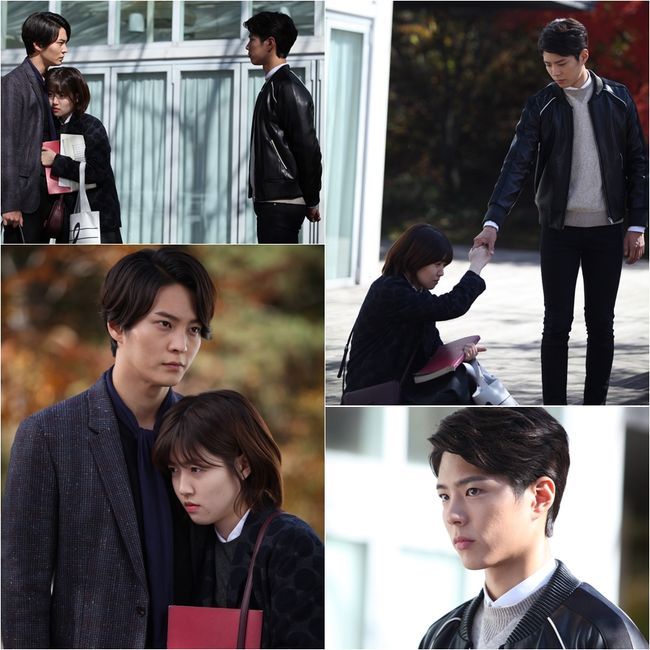 공개된 사진 속에는 넘어진 심은경에게 손을 내미는 박보검과 함께 이런 박보검을 견제하듯 심은경을 자신의 품에 끌어당겨 안는 주원의 모습이 담겨져 있어 긴장감을 자아낸다. 심은경은 전혀 생각지도 못한 행동을 하는 주원에 놀란 표정인 반면, 주원과 박보검은 서로를 매서운 눈빛으로 바라보고 있어 이들 사이에 형성된 미묘한 기류에 궁금증이 더해진다.