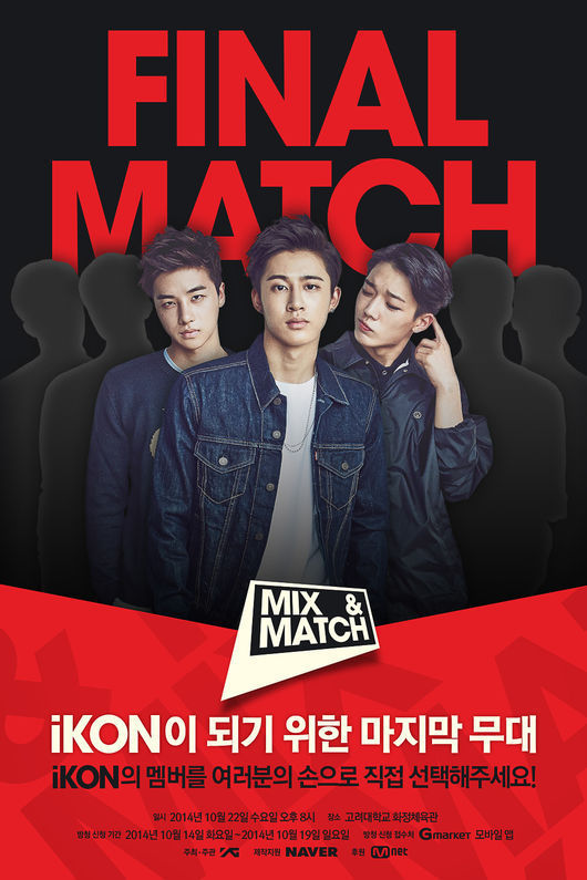 YG엔터테인먼트(이하 YG)의 새 보이그룹 아이콘(iKON)을 선발하기 위한 서바이벌 프로그램 ‘믹스앤매치(MIX & MATCH)’ 8화에서는 대망의 ‘파이널매치’ 현장이 공개될 예정이다.
