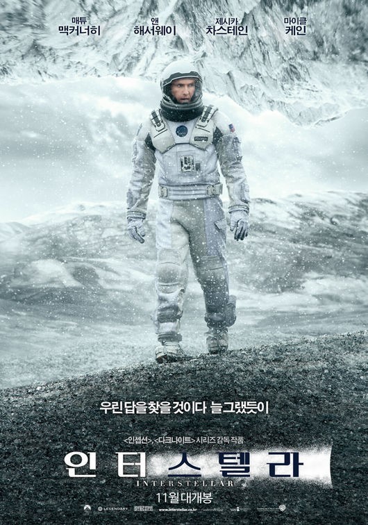 한편 '인터스텔라'는 희망을 찾아 우주로 가는 사람들의 이야기를 그린다. 세계적인 물리학자 킵 손이 발표한 웜홀을 통한 시간여행이 가능하다는 이론을 바탕으로 만들어졌다. 매튜 맥커너히를 비롯해 앤 해서웨이, 제시카 차스테인, 마이클 케인, 토퍼 그레이스 등이 출연한다. 35mm필름과 아이맥스, 2D 디지털, 4DX 등 다양한 상영방식으로 개봉한다. 11월 5일 24시(11월 6일 0시)부터 상영을 시작한다.